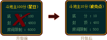 例如:斗地主星豆房间100底分,升级为波克点房间10底分。