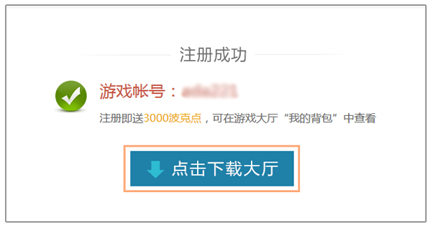 4、 注册成功后,您将免费获得 3000波克点 奖励,赶快下载波克棋牌客户端,体验波克游戏吧!