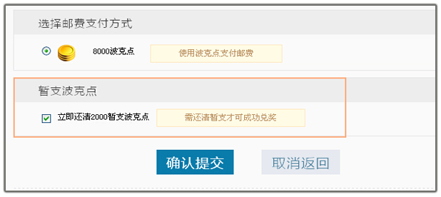 (暂支只能使用波克点一次性还清,还清后您的暂支额度将重新计算)