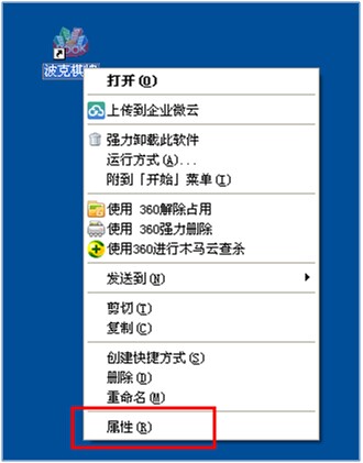 第一步:请先右键点击您电脑桌面上的“波克城市”游戏图标,右击鼠标选择“属性”;