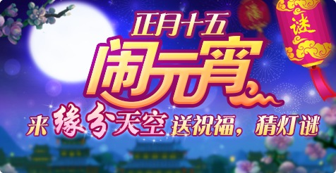 活动简介: 正月十五元宵节是中国的传统节日,在这个喜庆吉祥的夜晚,人们都会点上花灯来庆祝。现在,你也可以在“缘分天空”放祝福灯、猜灯谜了。